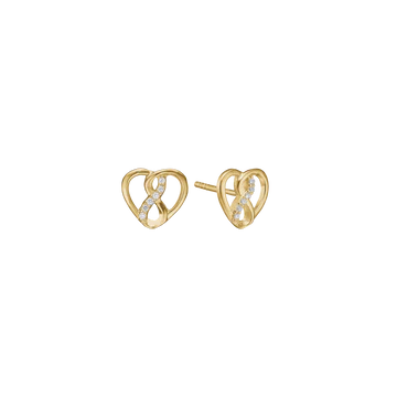 Ørestikkerne prydes af et romantisk hjerte med et evighedstegn og er smukt dekoreret med 2x6 diamanter (brillanter), i alt 0,06ct WPI.