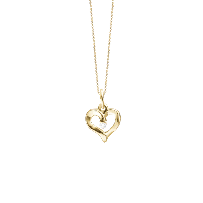Halskædens vedhæng er fremstillet i 8 karat guld, smukt prydet med en 0.03 ct LAB GROWN diamant, der stråler fra hjertet af designet.