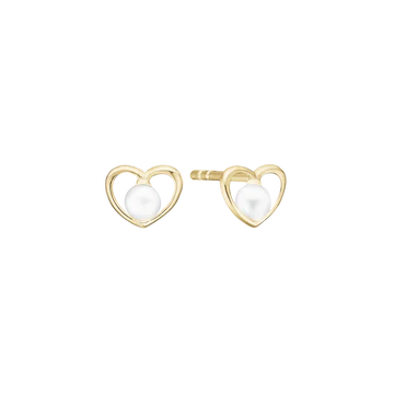 De er fremstillet i 8 karat guld og prydet med en delikat ferskvandsperle, elegant placeret i et hjerteformet design.