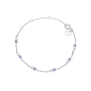 Armbåndet prydes af en kombination af agat og månesten, der er smukt sat sammen med fine kædeled. De to sten gentages i et elegant mønster, hvilket giver et sofistikeret og moderne look.
