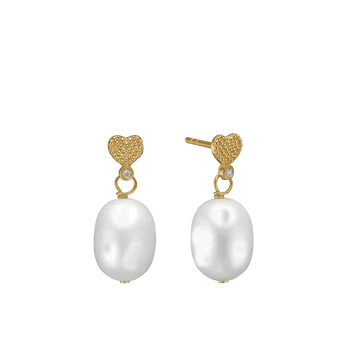 Ørehængerne består af en smuk barokperle, der hænger yndefuldt fra et hjerte, prydet med en funklende cubic zirkonia. Kombinationen af den naturlige perle og det glitrende hjerte skaber et unikt udtryk, der aldrig går af mode.