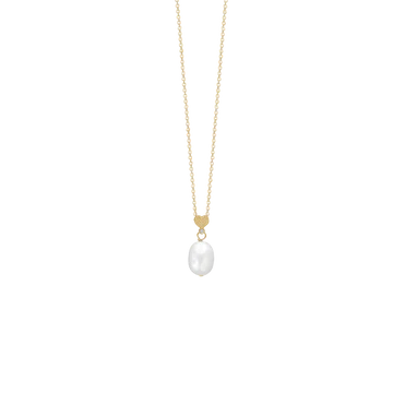Aagaard Halskæde i Forgyldt Sølv med Barokperle og Hjertevedhæng