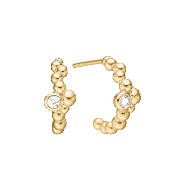 Disse elegante ørestikker er fremstillet i forgyldt sølv og designet med et unikt boblemønster, der skaber et iøjnefaldende udtryk. Som prikken over i’et prydes ørestikkerne af en glitrende zirkonia, der tilfører et strejf af eksklusivitet.