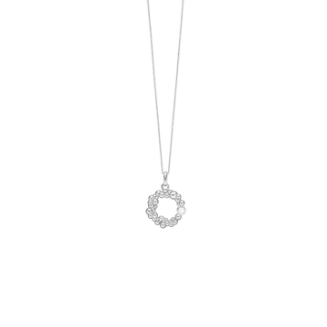 Dette smukke vedhæng består af små bobler, der danner en unik form og er prydet med en funklende zirconia, der giver et sofistikeret udtryk.
