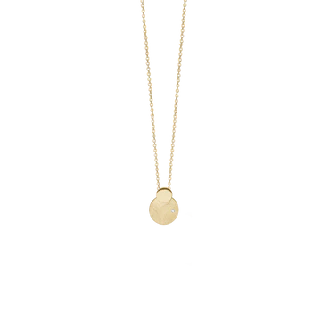 Vedhænget består af to smukt udformede cirkelformede plader: Den mindste plade er blankpoleret, mens den større har en flot mat finish og prydes af en funklende zirkonia-sten.