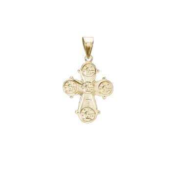 Dette ikoniske kors vedhæng er udsmykket med de fem apostle på bagsiden, hvilket tilføjer en ekstra betydning og detalje til designet.