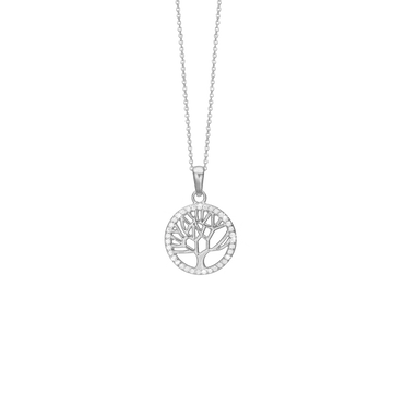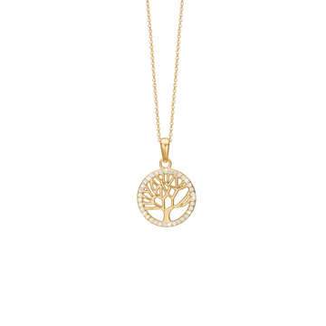 Oplev vores elegante runde Livets Træ vedhæng med zirkonia, fra det danske firma Aagaard, der tilføjer et strejf af luksus til dit smykkeskrin.