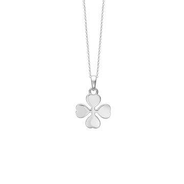 Aagaard har lavet et elegant firkløver-vedhæng med kæde på 45 cm, perfekt til dem, der ønsker et minimalistisk og stilfuldt smykke.