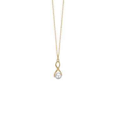 Halskæden er fremstillet i 8 kt. rødguld og prydes af en smuk ferskvandsperle i enden af et elegant ottetals-vedhæng, der symboliserer uendelighed.