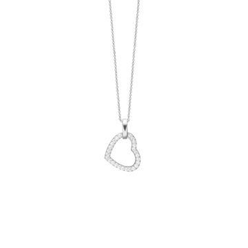 Halskædens vedhæng er formet som et hjerte og prydet med funklende zirkonia-sten, der tilfører et eksklusivt touch til ethvert outfit.