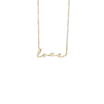 Denne fast-kæde halskæde har et smukt "Love"-motiv i midten, der tilføjer et romantisk touch til ethvert outfit.