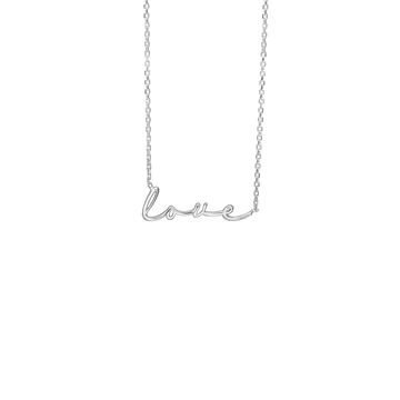 Halskæden har et enkelt og tidløst design med et smukt "Love"-motiv i midten og måler 45 cm – ideel til både hverdag og fest.