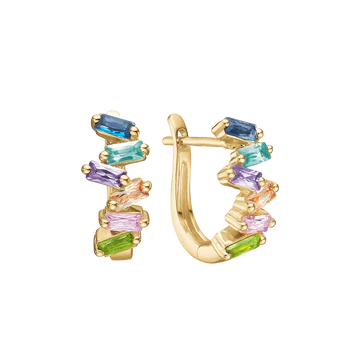Disse smukke ørestikker er fremstillet i både 925 sterling sølv og forgyldt 925 sterling sølv, og de er prydet med seks rektangulære zirkonia-sten i forskellige livlige farver.