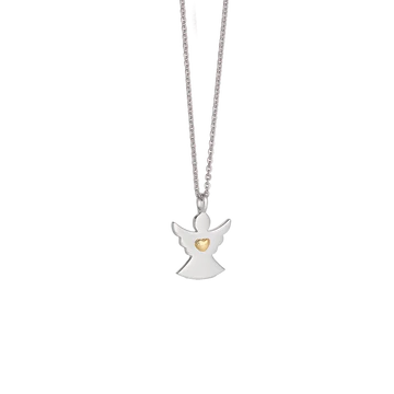 Denne elegante engel er fremstillet i høj kvalitets sterlingsølv og prydet med et forgyldt hjerte, der tilfører et ekstra touch af varme og kærlighed.