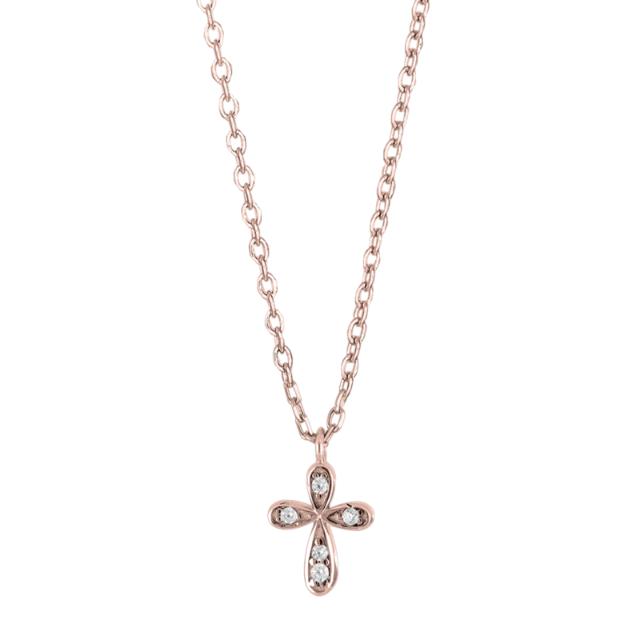 Halskæden er designet med et rosaforgyldt sølvkors, der er pyntet med funklende kubisk zirkonia, som reflekterer lyset smukt, når du bevæger dig.