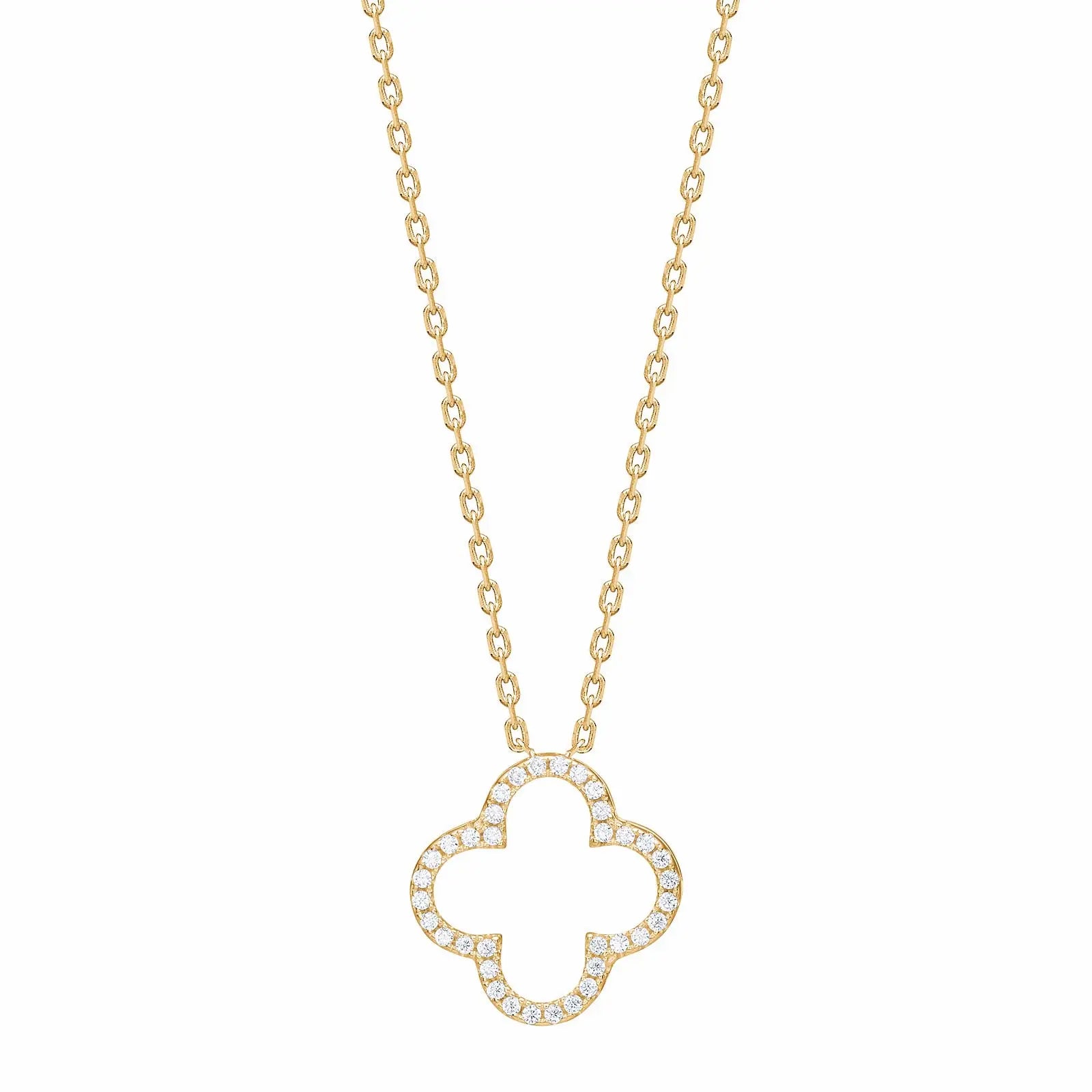 Joanli Nor halskæde i sølv eller forgyldt sølv med zirkonia – elegant firekløverdesign.