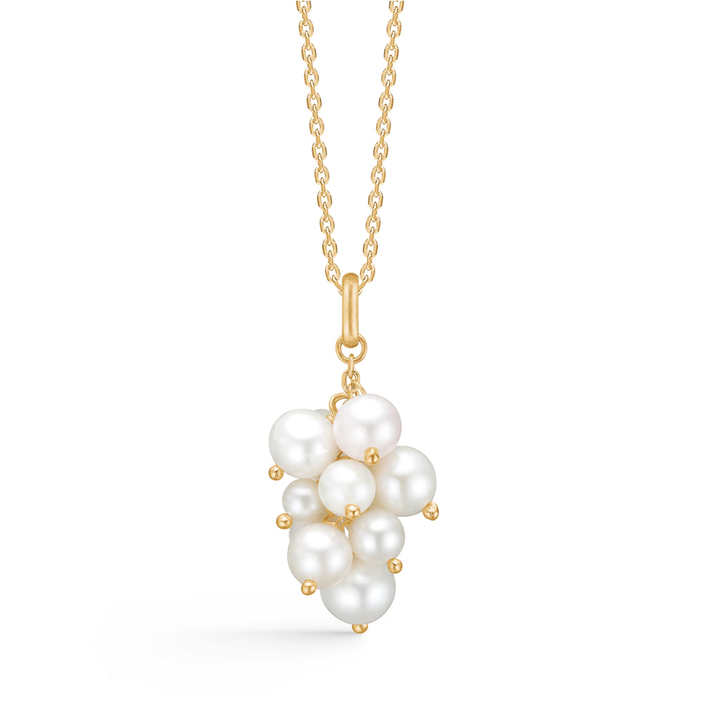 Smuk og elegant vedhæng fra det danske smykkebrand Mads Z. Dette eksklusive vedhæng består af hvide kulturperler i forskellige størrelser, der hænger smukt i en klase og tilføjer et unikt touch af elegance til enhver stil.