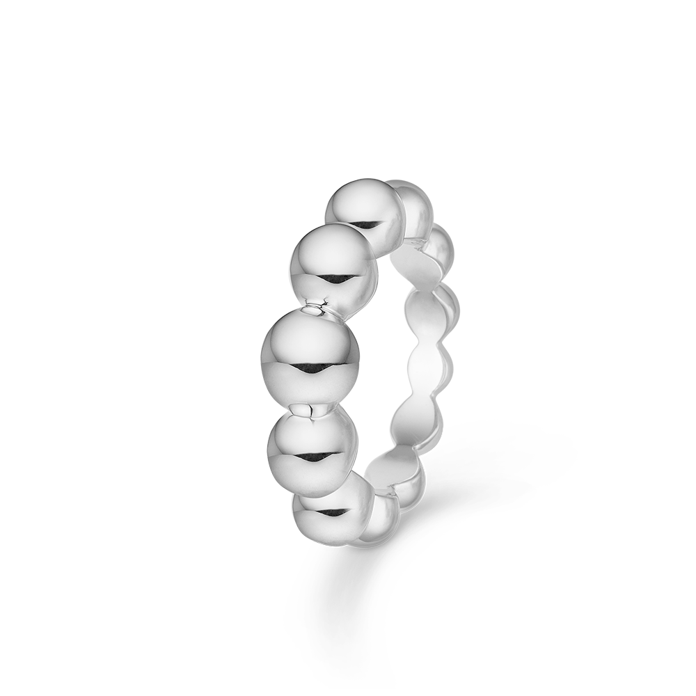 Tilføj et markant og stilrent touch til dit look med denne Big Ball ring fra danske Mads Z. Ringen er fremstillet i ægte 925 sterlingsølv og består af en række polerede sølvkugler, der skaber et skulpturelt og moderne udtryk. Det minimalistiske design gør den let at kombinere med andre smykker – eller bære alene som et statement-piece.