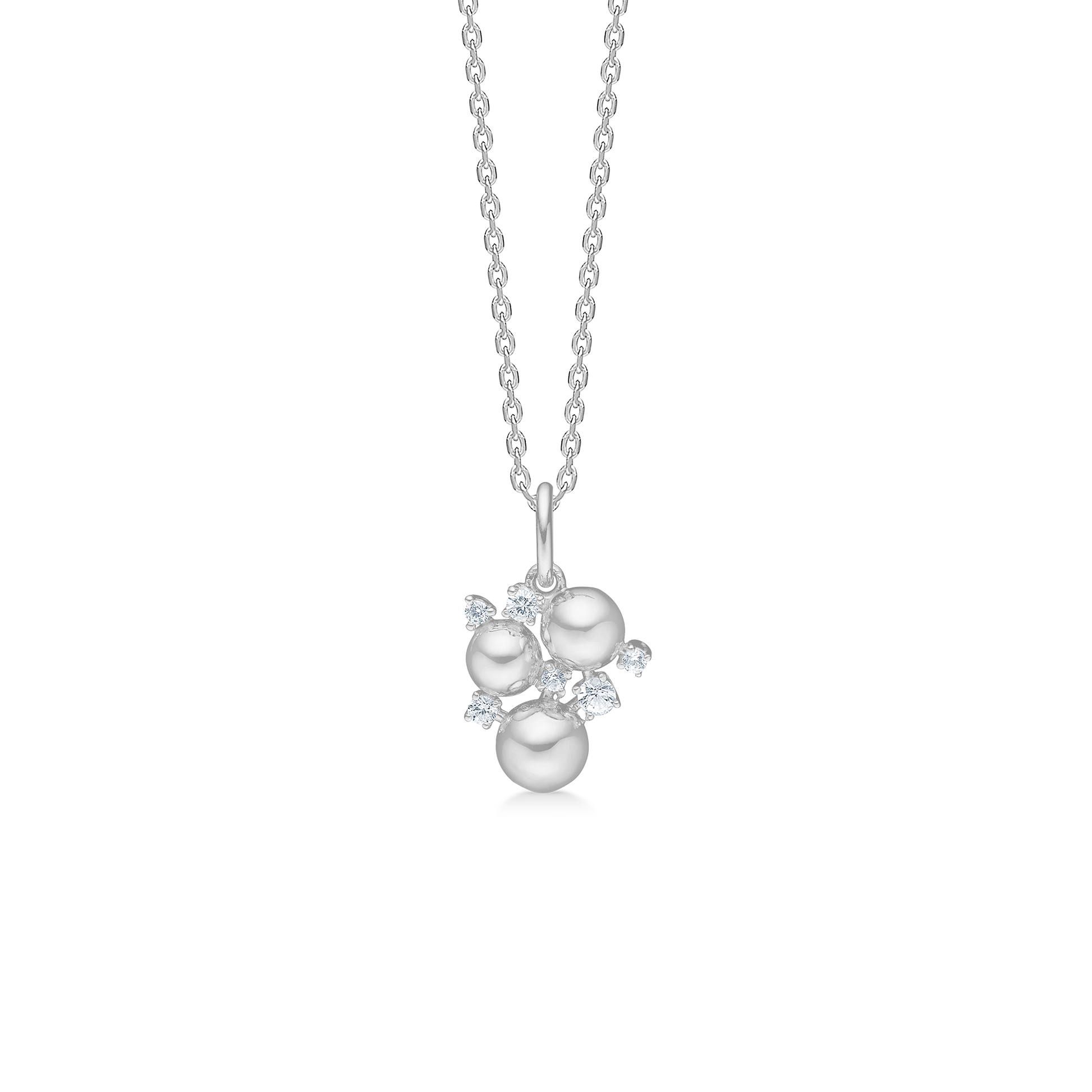 Denne elegante sølv halskæde fra danske Mads Z er inspireret af boblende lethed og tidløs elegance. Vedhænget består af blankpolerede sølvkugler, smukt kombineret med hvide topaser, der tilføjer et subtilt og funklende udtryk – som små perler af champagne.