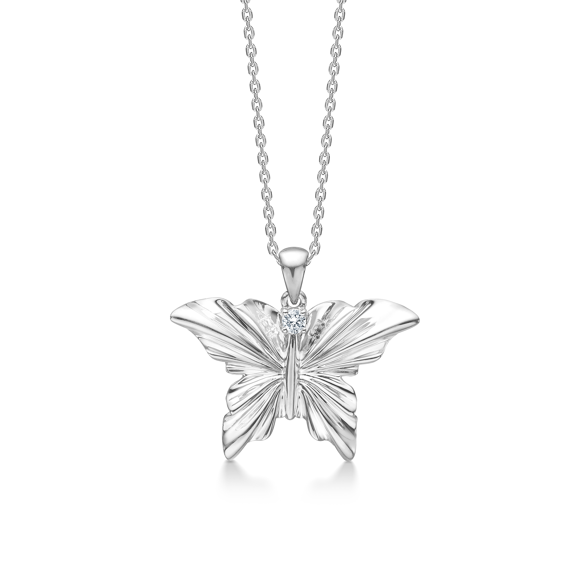 Fremstillet i rhodineret sterling sølv, der sikrer en blank finish og lang holdbarhed. Sommerfuglen symboliserer frihed, styrke og ny begyndelse – og gør halskæden til mere end bare et smykke.