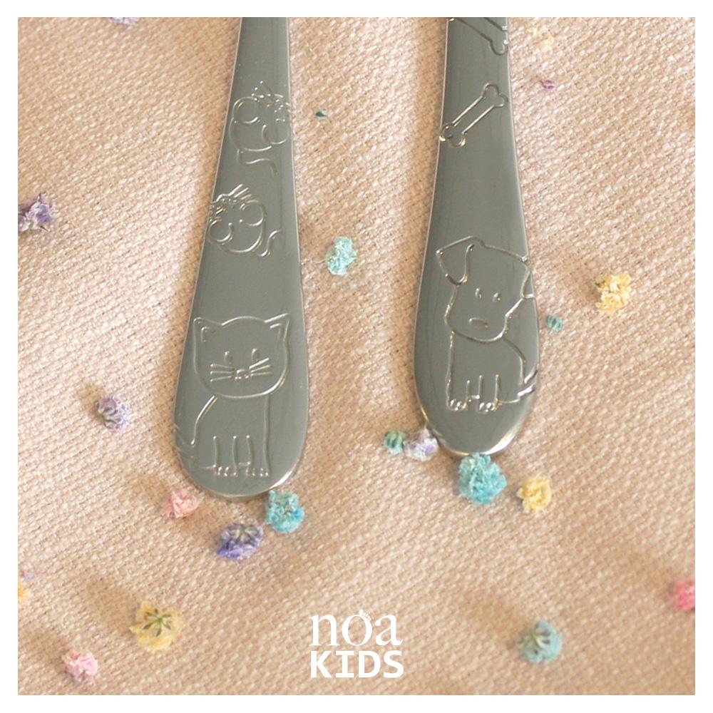Gør dåbsdagen ekstra mindeværdig med dette søde børnebestik i rustfrit stål, dekoreret med charmerende kæledyrsmotiver som katte, hunde og kaniner. Sættet består af gaffel, kniv, spiseske og teske i børnevenlig størrelse, perfekt til små hænder og til at skabe hyggelige måltidsstunder.