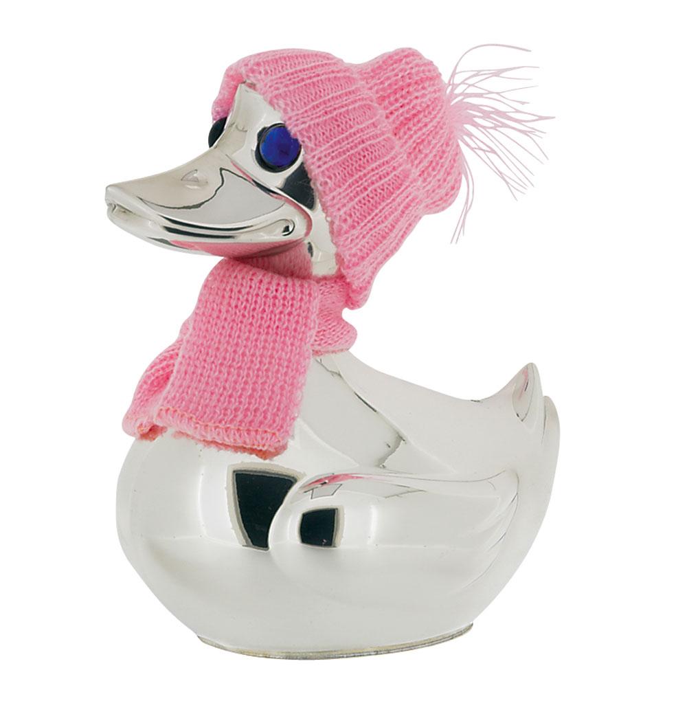 Med sit blanke forsølvede finish og kærlige detaljer er denne spareand en populær og klassisk gave, der vil vække glæde i mange år.