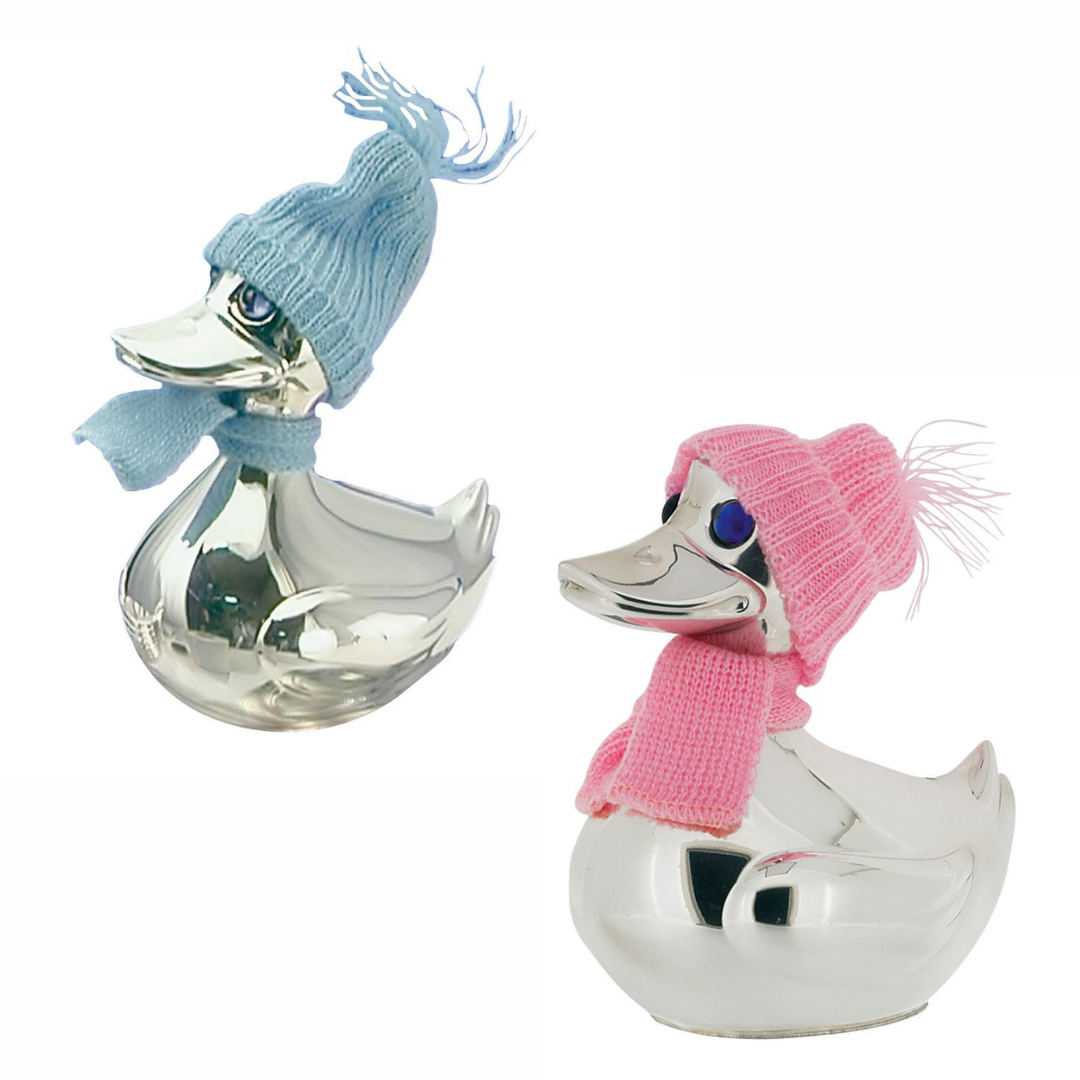 Giv en sød og mindeværdig gave til barnets store dag med denne charmerende forsølvede sparebøsse formet som en and. Den lille and bærer en blå eller lyserød hue og matchende halstørklæde, som gør den perfekt til både drenge og piger. Sparebøssen er ideel som gave til dåb eller navngivning og fungerer som en smuk dekoration på børneværelset, samtidig med at den opmuntrer til at spare op fra en tidlig alder.