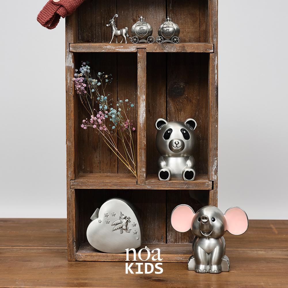 Sød, charmerende og tidsløs fortinnet elefant sparebøsse med farvede ører. Denne sparebøsse er ideel som en personlig dåbsgave eller navngivningsgave, da den kan graveres med barnets navn, dato eller en lille hilsen. Den nuttede elefant med de store ører vil hurtigt blive en favorit på børneværelset – både som dekorativ figur og som et første skridt ind i opsparingens verden.