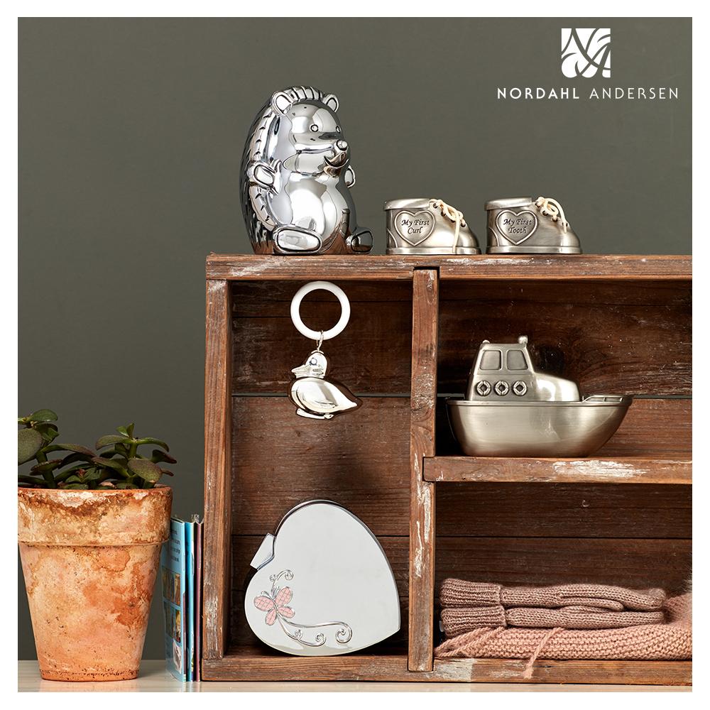 Gør dåbsdagen ekstra mindeværdig med denne charmerende fortinnede sparebøsse formet som en sød båd. Sparebøssen kan graveres på siden af skibets skrog, så du kan tilføje barnets navn, dato eller en personlig hilsen – en detalje, der gør gaven helt unik.