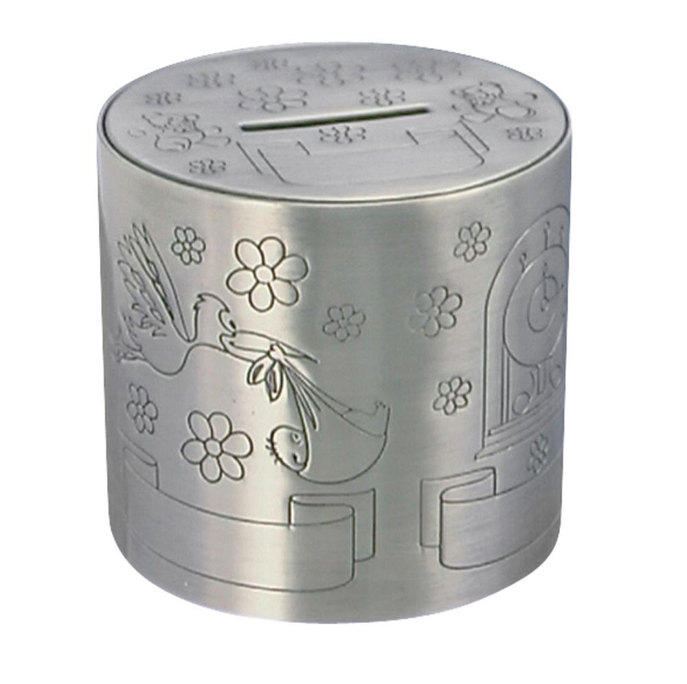 Leder du efter en gave, der kombinerer både skønhed og personlig betydning? Denne elegante fortinnede sparebøsse med dåbsmotiv er designet til at være et uforglemmeligt minde fra barnets store dag. Pyntet med søde motiver som stork og blomster, bliver denne sparebøsse både dekorativ og praktisk til opsparing.