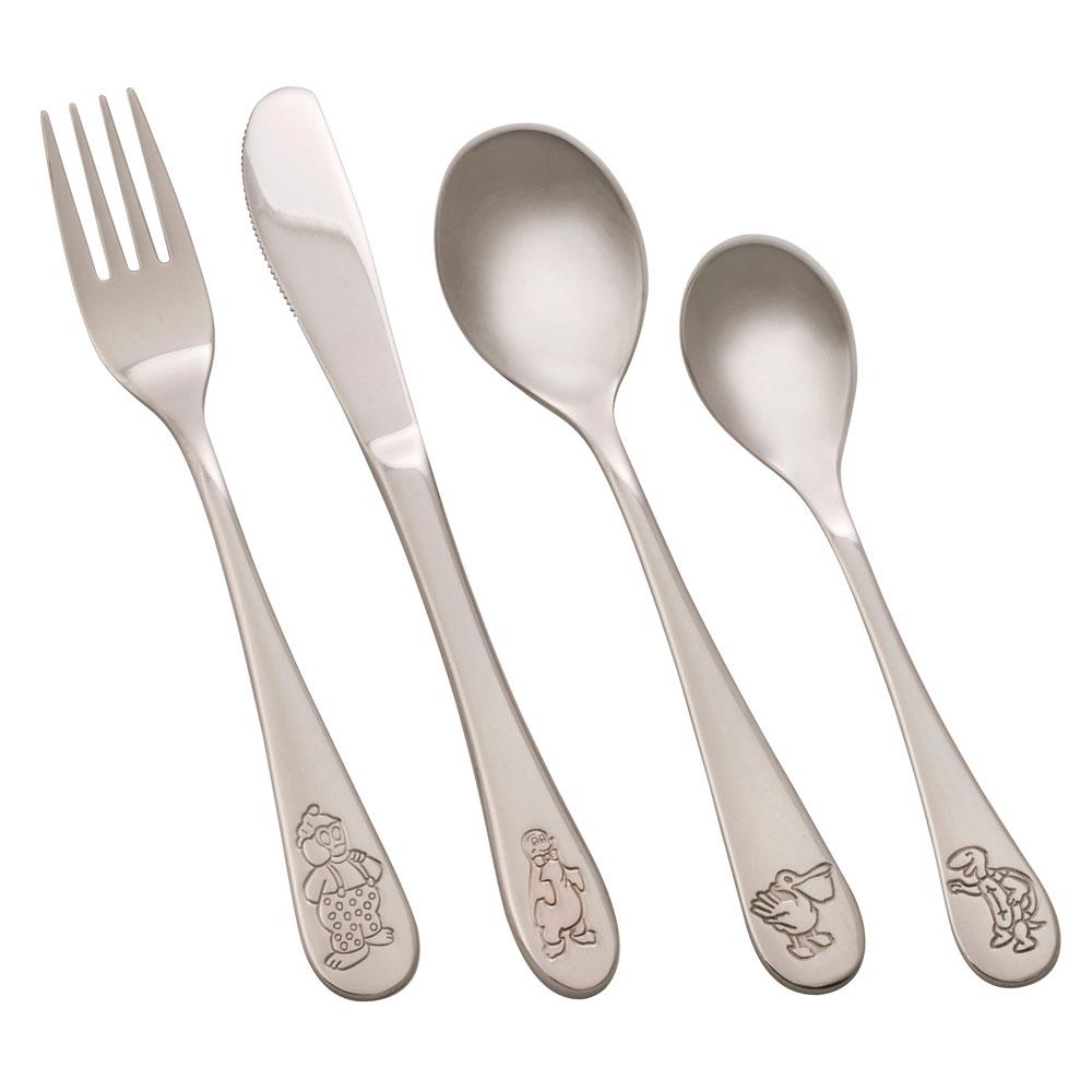 Gør dåbsgaven uforglemmelig med dette fine børnebestik i rustfrit stål, dekoreret med de elskede Rasmus Klump-figurer. Sættet indeholder kniv, gaffel, spiseske og teske – alle tilpasset små hænder, så måltiderne bliver en fornøjelse for barnet.