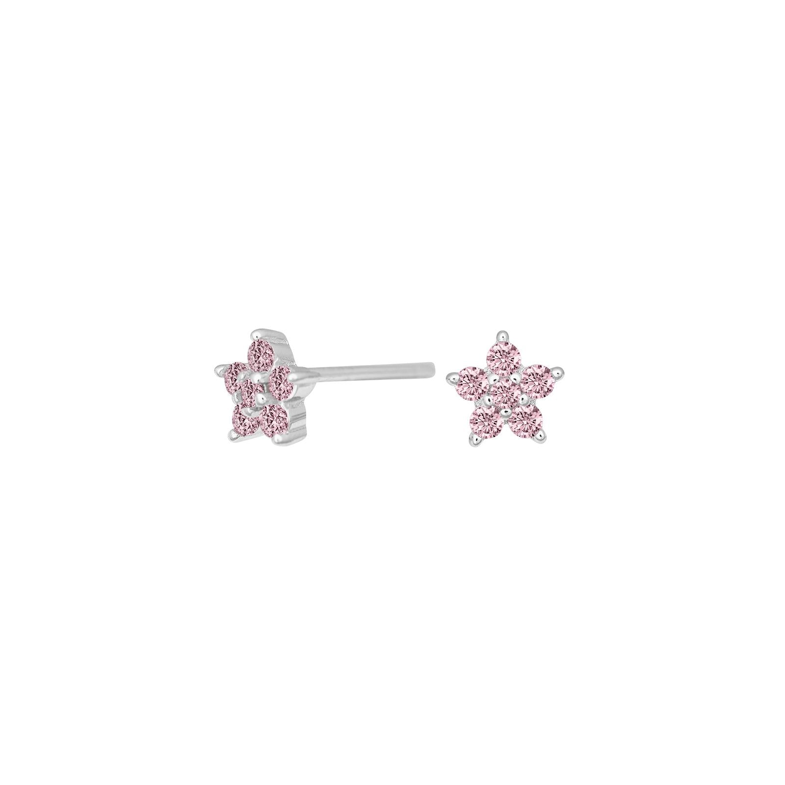 NOA Kids Jewellery sølv ørestikker – Blomst med lyserøde zirkonia