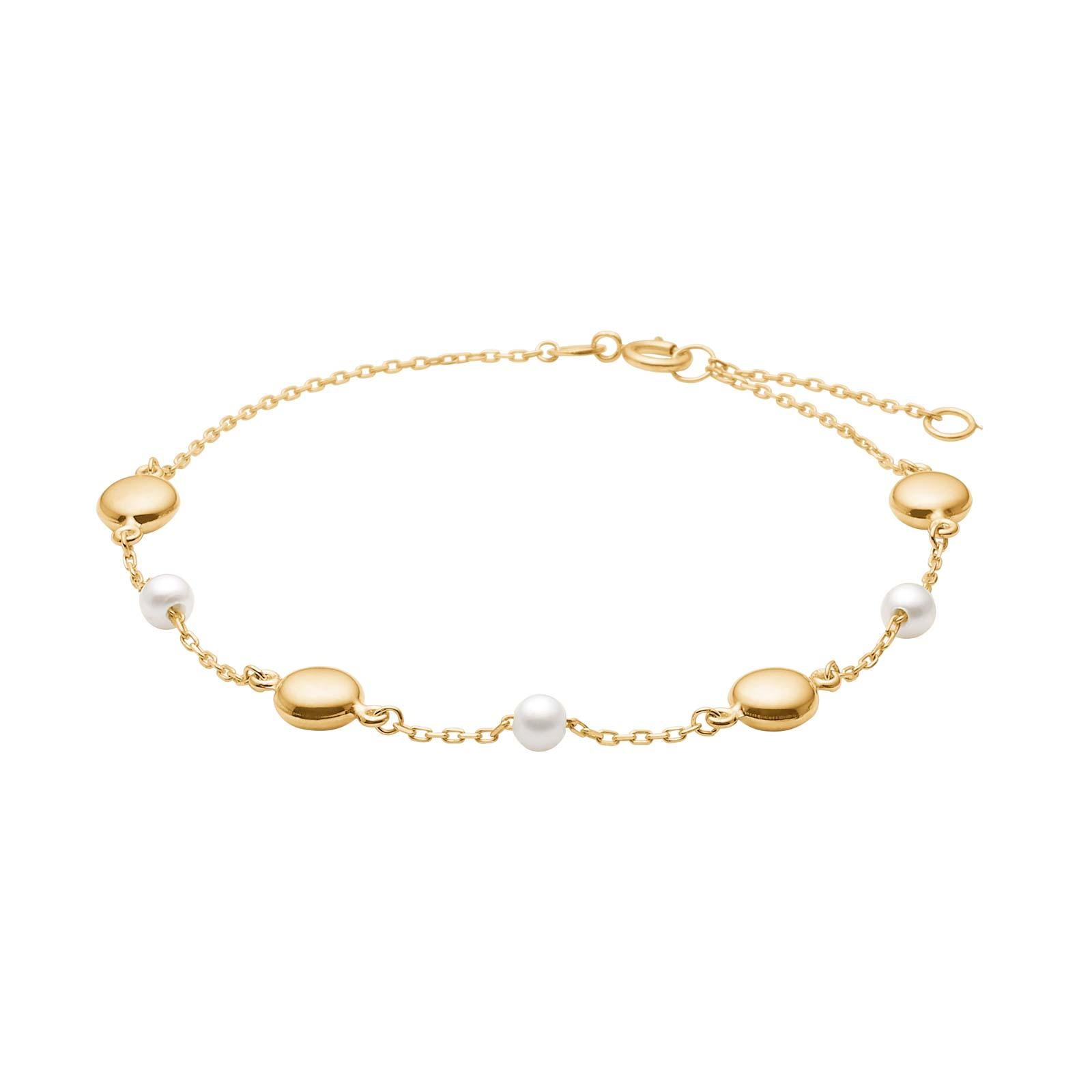 De naturlige ferskvandsperler har en blød glans og unik form, som gør hvert armbånd helt unikt. Det varme skær fra det ægte 8 karat guld skaber en raffineret kontrast til perlernes hvide nuancer og tilfører armbåndet en luksuriøs finish.