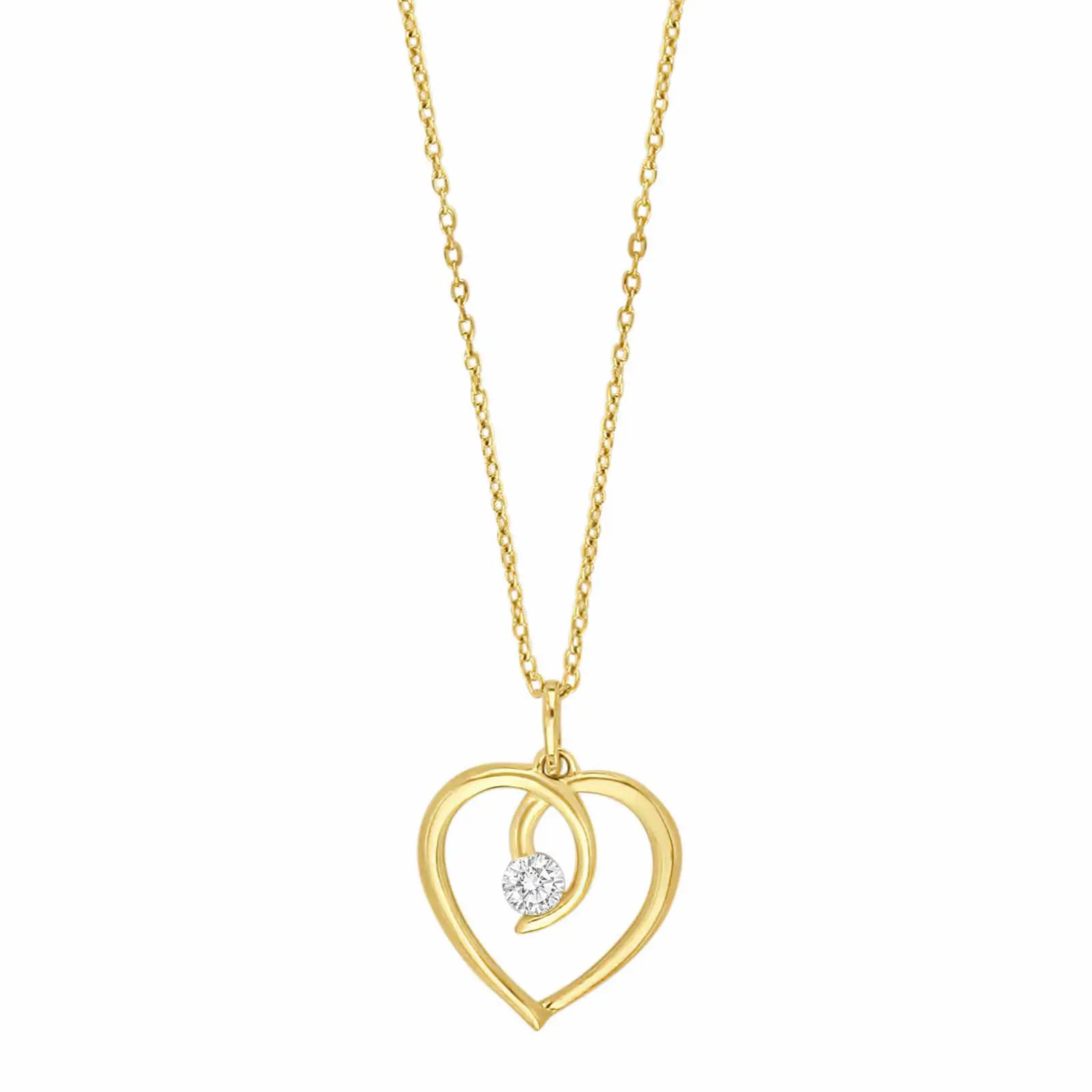 Siersbøl halskæde med hjertevedhæng i 9 kt guld og zirkonia – inkl. forgyldt kæde