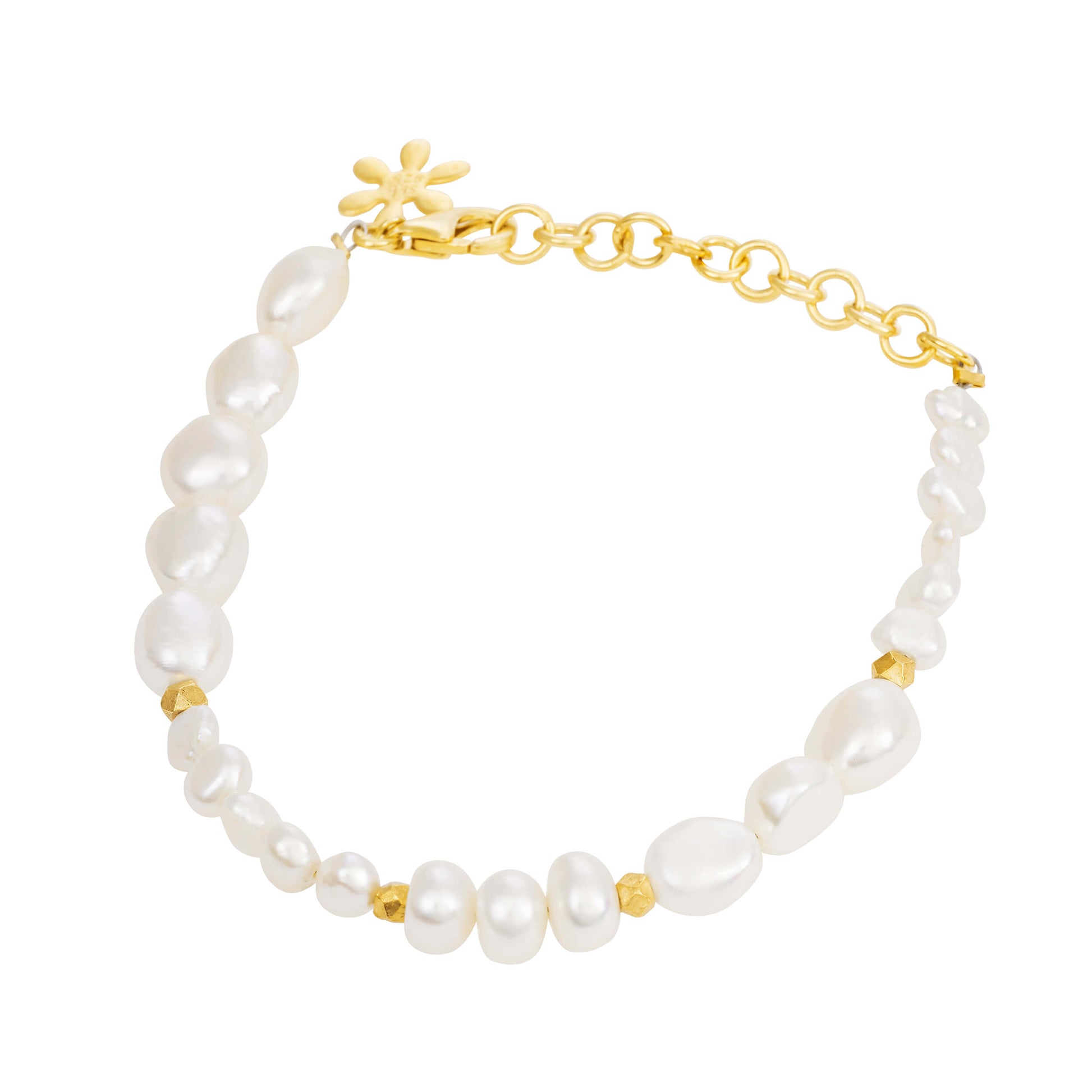 Susanne Friis Bjørner Armbånd med miks af hvide ferskvandsperler og forgyldte sølv facet led