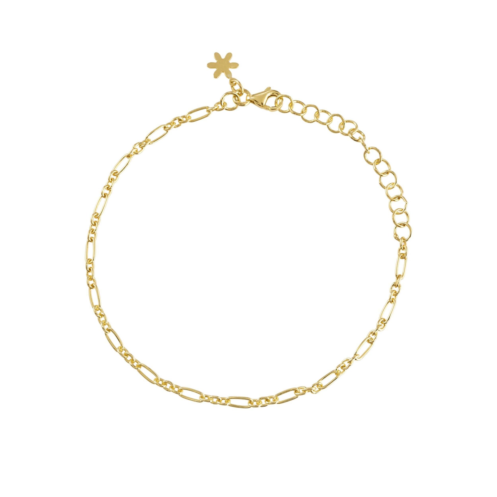 Armbåndet er udført i forgyldt sterling sølv og designet i en klassisk oval figaro kæde med rund tråd, der måler ca. 2,5 mm i bredden.