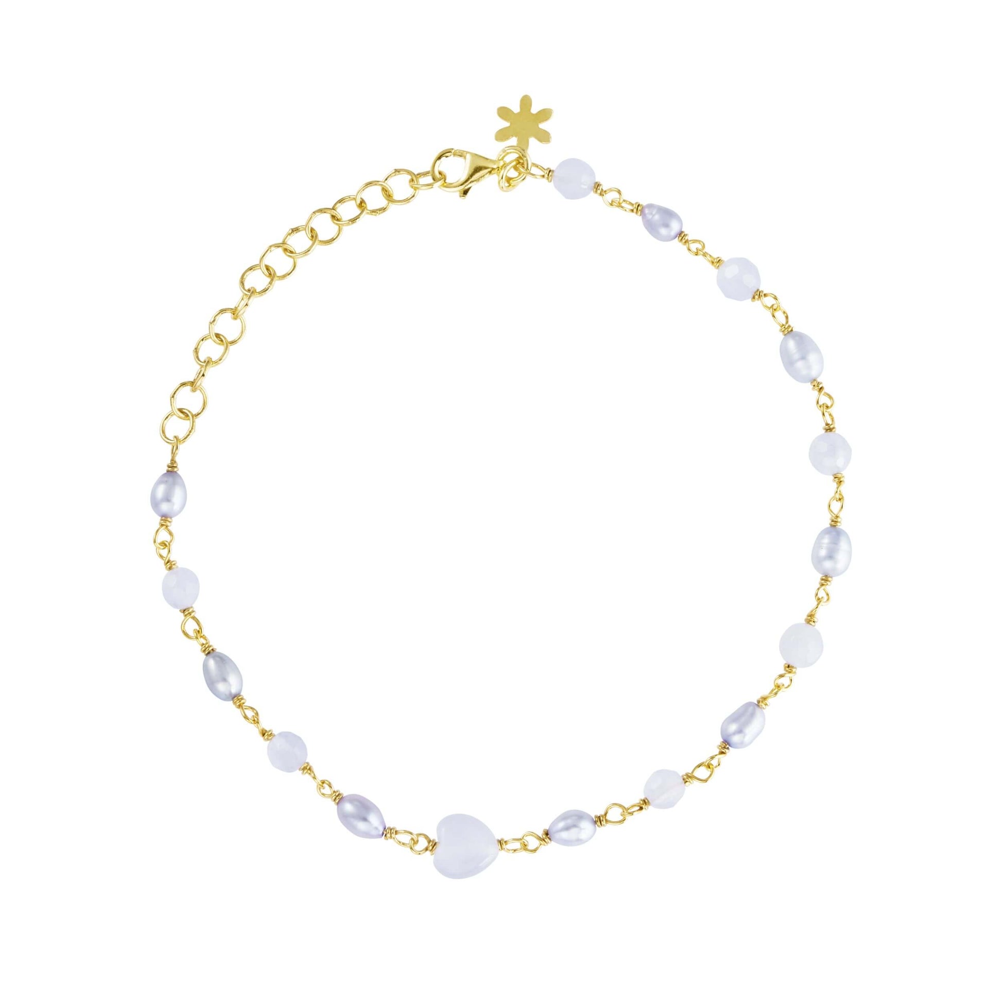 Susanne Friis Bjørner Armbånd i forgyldt sølv med blå calcedon og ferskvandsperler