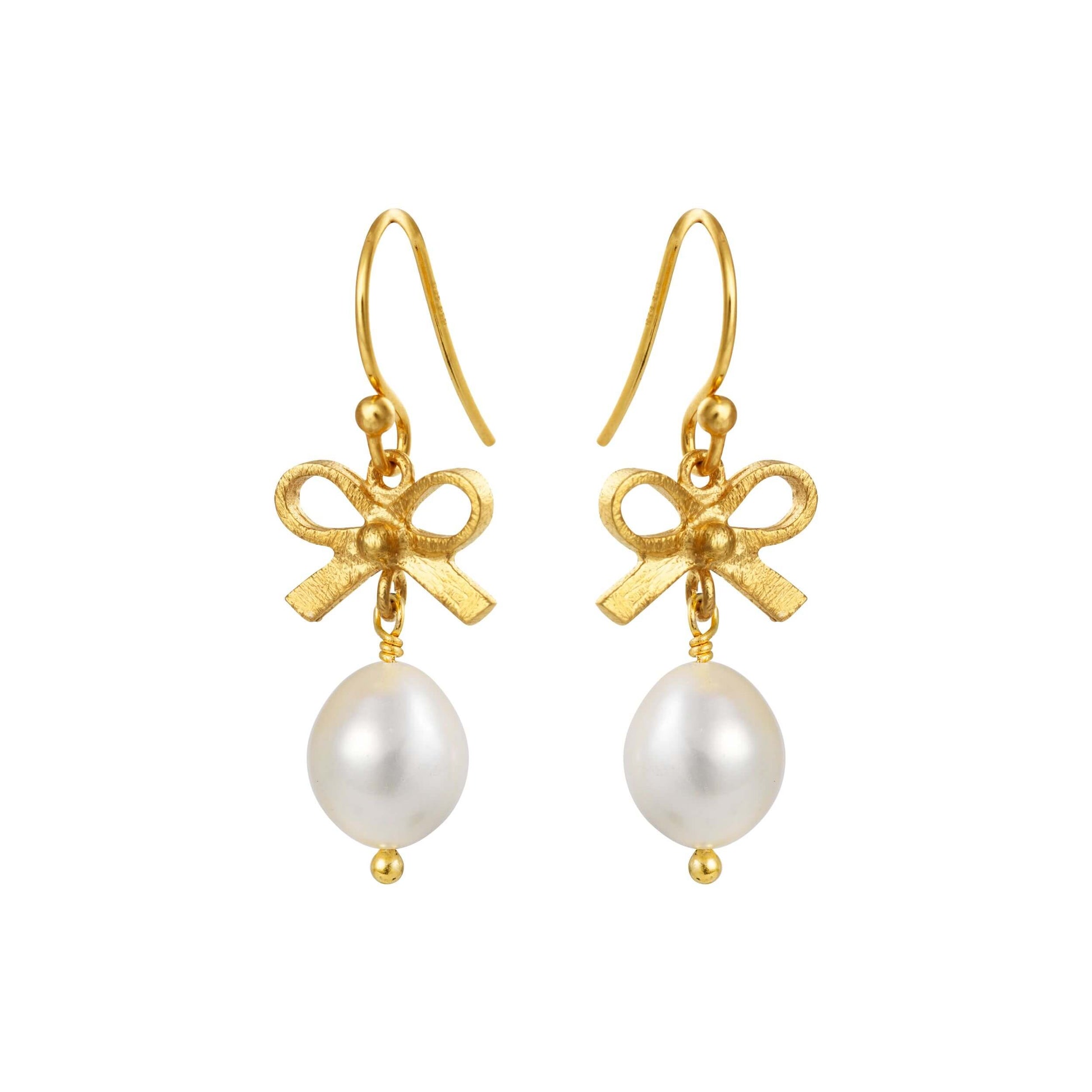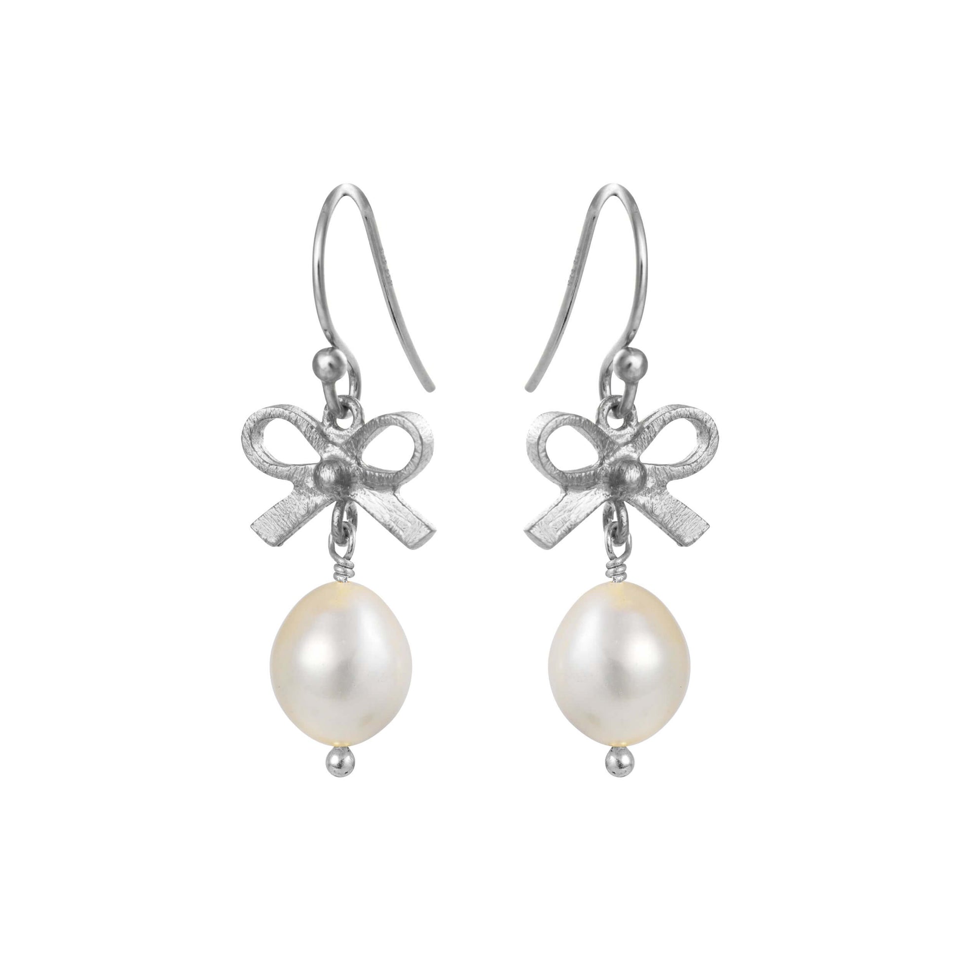 Elegant og tidløs – denne smukke ørering fra Susanne Friis Bjørner er designet i sterlingsølv og prydet med en delikat sløjfe, der elegant bærer en naturlig hvid ferskvandsperle på 7-8 mm.