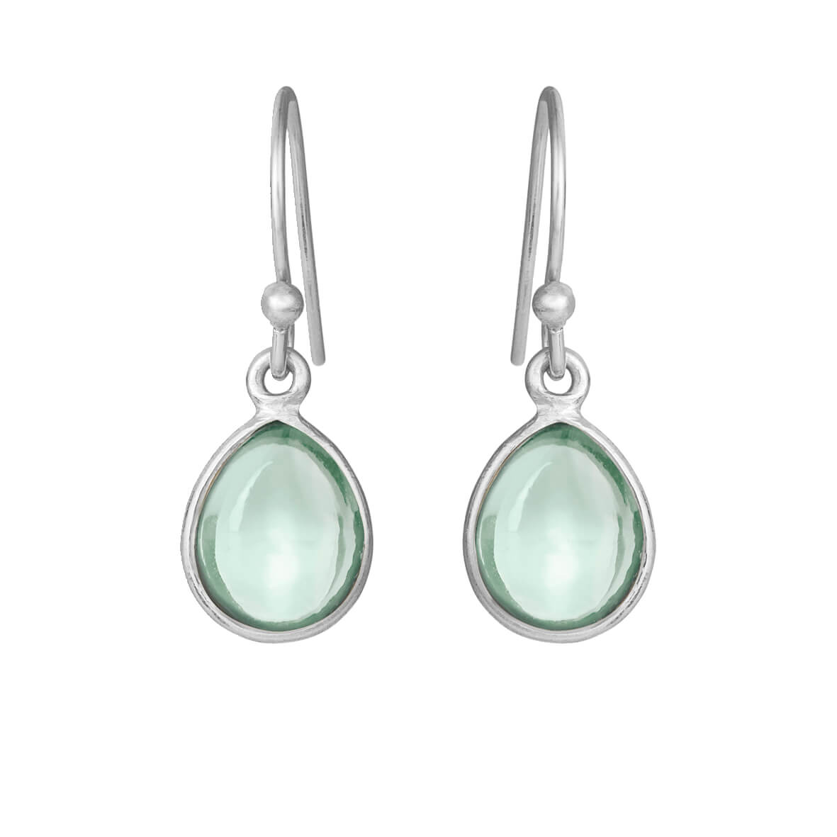 Elegant og tidløs – denne smukke ørering fra Susanne Friis Bjørner er fremstillet i sterlingsølv og prydet med en blankpoleret grøn kvarts i dråbeformet cabochon-slibning (8x10 mm).