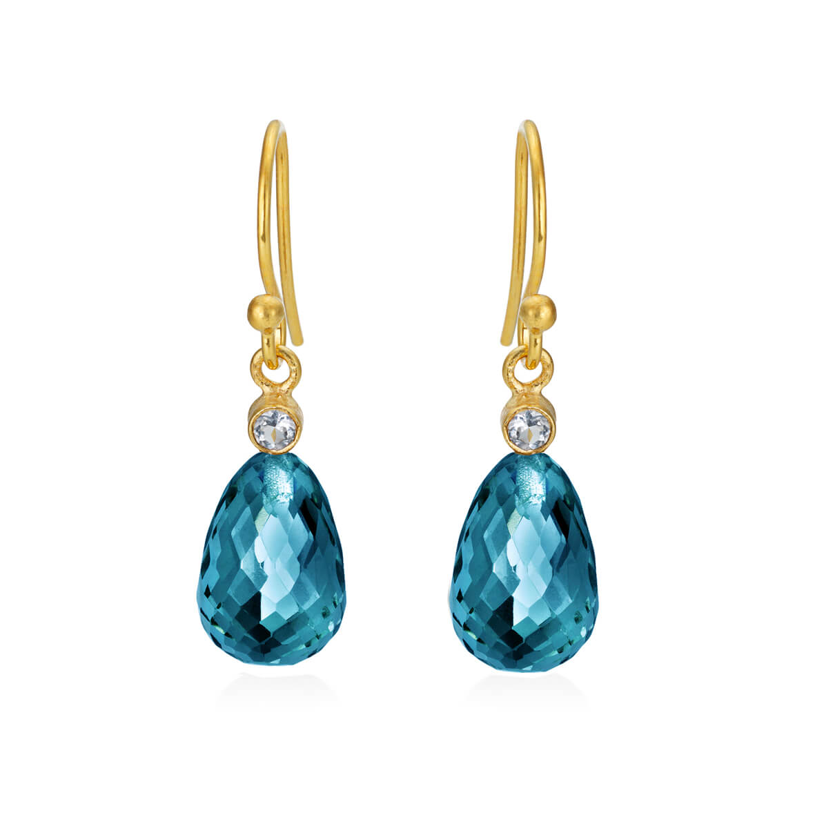 Susanne Friis Bjørner ørering – Forgyldt sølv med London blå krystal & hvid topas
