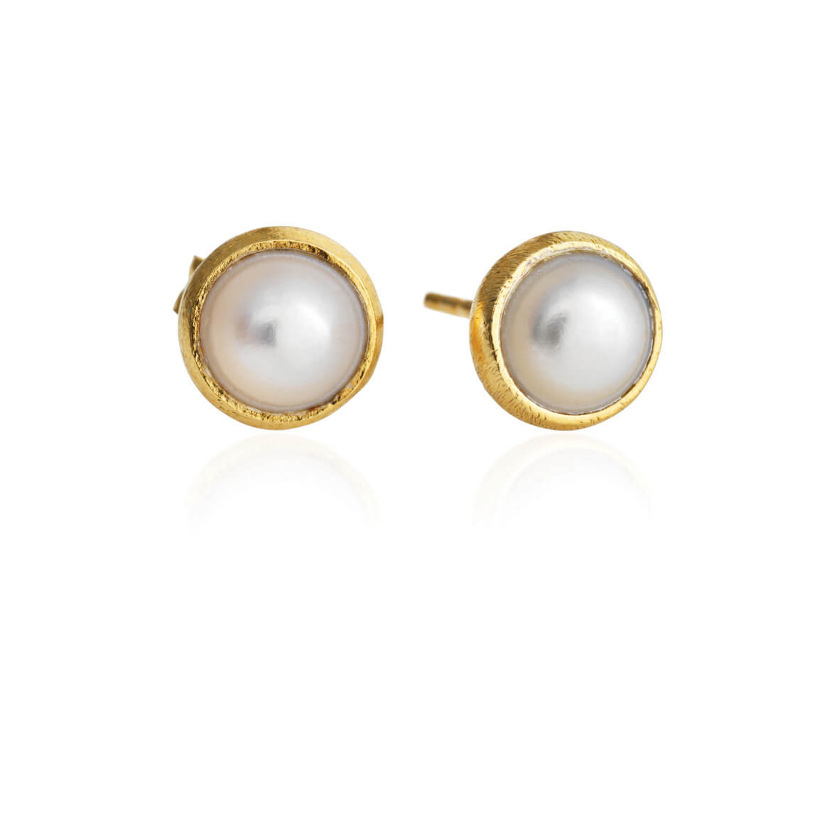 Susanne Friis Bjørner ørestik i forgyldt sølv med ferskvandsperle
