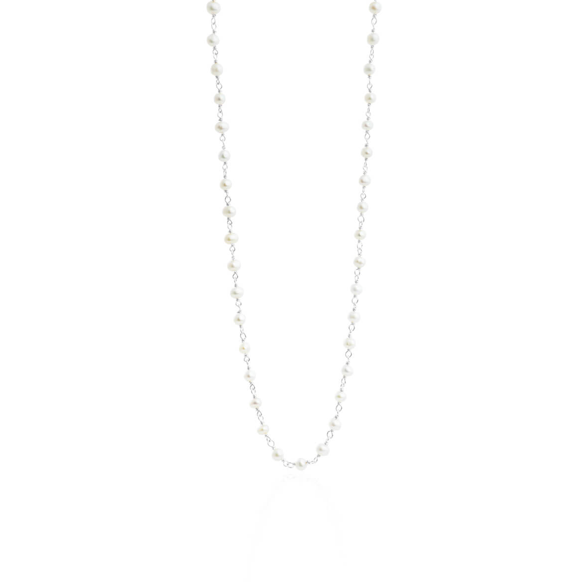 Elegant og tidløs halskæde fra Susanne Friis Bjørner, designet i sterlingsølv og prydet med smukke, hvide ferskvandsperler på 3-4 mm.